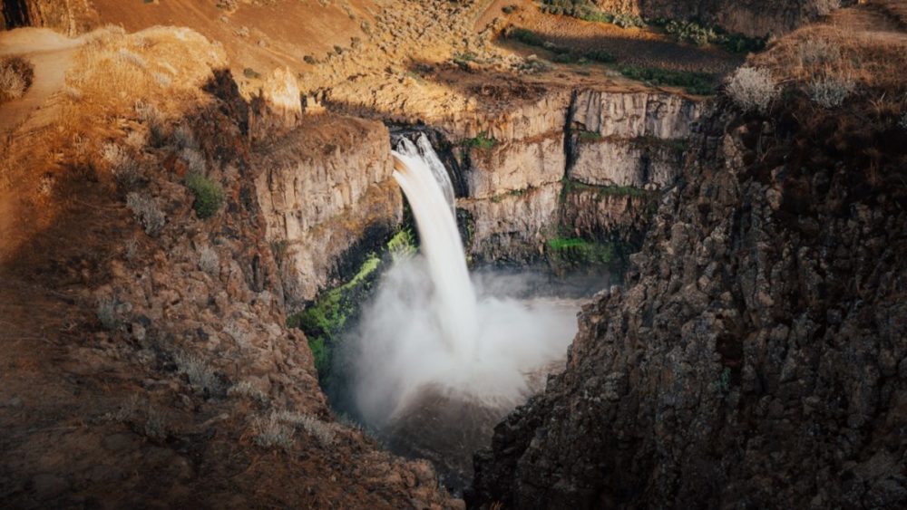 I like to approach this rule by imagining a frame around my subject. Frames can be ornate on their own, but they still primarily serve to amplify the subject. So in my example below, I could’ve taken a picture of Palouse Falls on its own and had a great shot. But after walking around I found a split in the cliffs that framed the waterfall beautifully in my mind, reducing the open space around it to hone my attention to the star of the show.