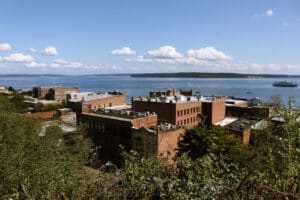 The rain shadow from the Olympic Mountains keeps Port Townsend drier than almost anywhere else west of the Cascades, averaging about 19 inches of rain per year. That mild climate helped establish the Wooden Boat Festival, Jazz Port Townsend, and dozens of galleries and studios that have made this one of Washington’s most genuine arts destinations. Fort Worden State Park at the north end of town provides 434 acres of trails, beaches, and the concrete gun batteries of an 1890s coastal defense post.