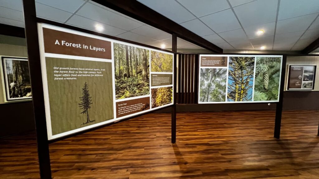 The Catherine Montgomery Interpretive Center enhances the forest experience by educating visitors about ecosystem differences between eastern and western mountain slopes, early women conservationistsโ efforts, and Muckleshoot tribal connections to the land, while the surrounding native plant garden provides hands-on learning about regional flora including identification of edible and poisonous species from diverse Washington environments.