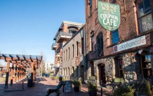 Bellingham's southernmost neighborhood was a separate city before the 1903 consolidation. The original 19th century brick storefronts along Harris Avenue are still in use, housing independent bookstores, coffee shops, and restaurants. Fairhaven is the starting point for Chuckanut Drive and home to the Alaska Marine Highway ferry terminal, which runs routes to Southeast Alaska year round.